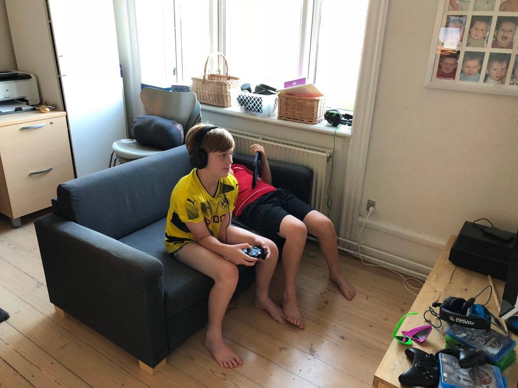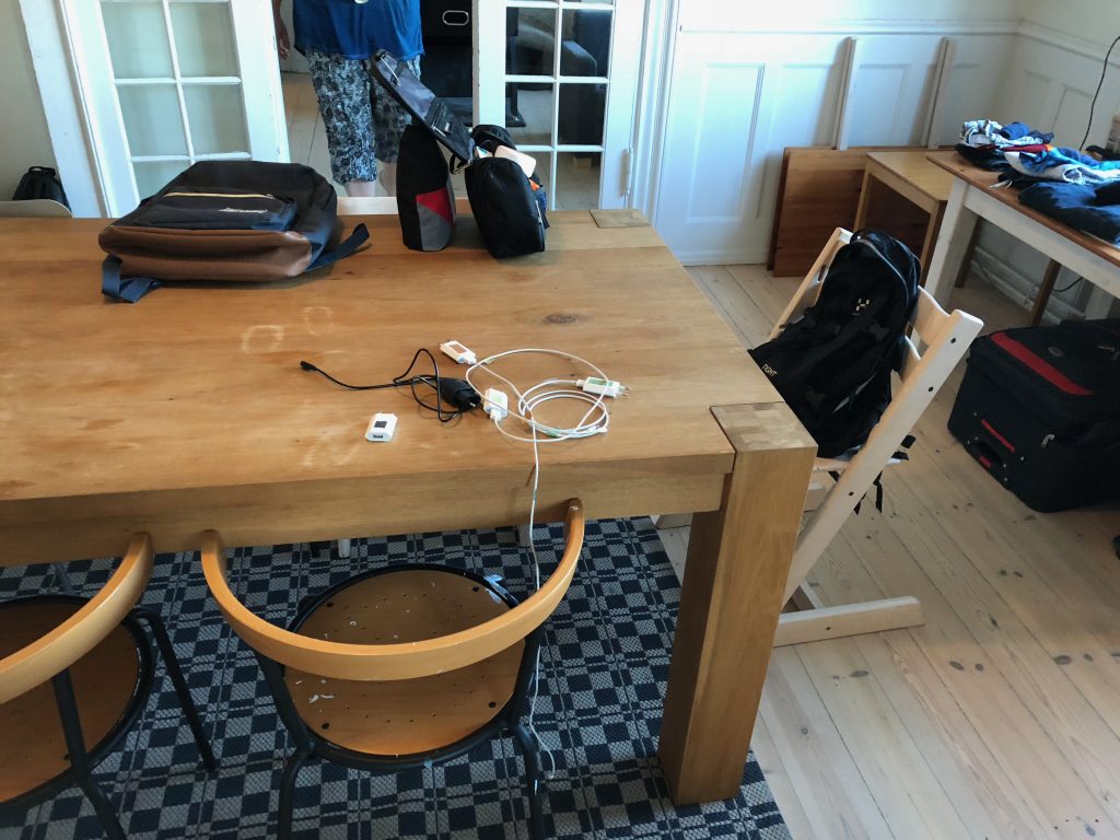 Det er altid elektronikken der bruges mest tid på. Vi har 6 mobiltelefoner, 2 iPads, 1 bærbar, 4 powerbanks og 6 høretelefoner med + ledninger til at servicere dem 🙂