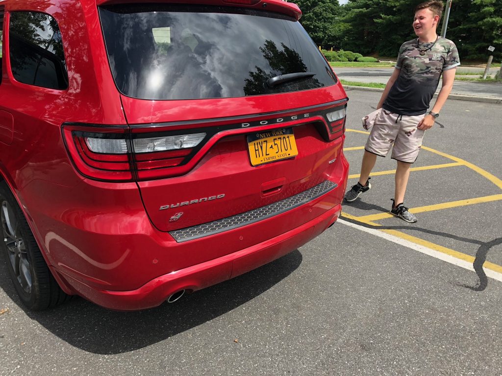 Vi fik en rød Dodge Durango som var en virkelig dejlig bil. Den havde en ekstra række sæder, så enden Sylvester eller Villads kunne sidde her på de lange ture. Men der var også fint med plads på bagsædet til tre. Bagagerums pladsen var også fin. Dog senere på turen hvor vi fik gang i flere tasker, så måtte Sylvester og Villads sidde på bagsædet.